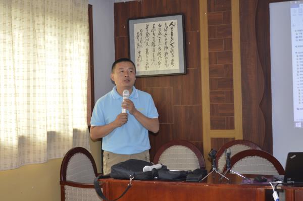 隨后公司技術(shù)研發(fā)總監(jiān)王金紀(jì)先生做了具有指導(dǎo)性意義報(bào)告,王總對(duì)當(dāng)前國(guó)家對(duì)獸藥企業(yè)的研發(fā)生產(chǎn)法規(guī)、獸藥研發(fā)形勢(shì)、行業(yè)發(fā)展現(xiàn)狀、公司現(xiàn)有產(chǎn)品情況給予了詳細(xì)說(shuō)明。