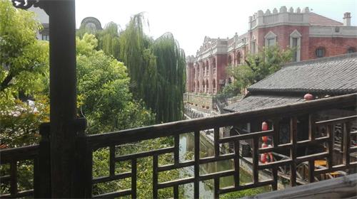 這些建筑座落在城中河的兩側(cè),一排排商鋪,小橋流水,水中有樓,樓間有水,清清的河水和綠油油的樹木,簡直就是江南水鄉(xiāng)啊!在這古老的街道和巷子中還保留著一些戰(zhàn)爭的遺跡和故事介紹,這些故事記載了當(dāng)時(shí)戰(zhàn)斗景象的慘烈和悲壯。臺兒莊的建筑有的雄偉高大、有的小巧別致、有的古香古色、有的神圣莊嚴(yán)真是像導(dǎo)游所說的,這里的建筑是南北交融、中西合璧,可以想像出當(dāng)年是多么的繁華和興隆。