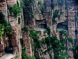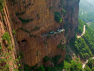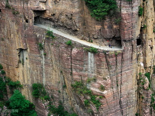 太行山由于地殼運(yùn)動(dòng)形成了斷裂,幾乎是垂直而下,山谷往往是萬(wàn)丈深淵。掛壁公路就是在這樣的絕壁上開(kāi)鑿出來(lái)的。如今,就算是走在掛壁公路上,看看腳下不見(jiàn)底的深谷,都會(huì)不寒而栗,難以想象當(dāng)初郭亮村的村民是以何等的勇氣開(kāi)鑿出了這樣一條人間奇跡!