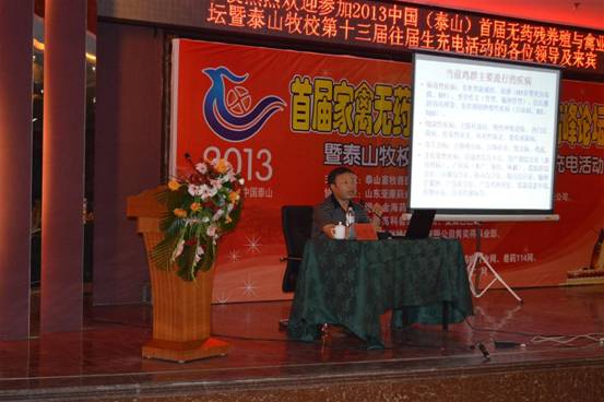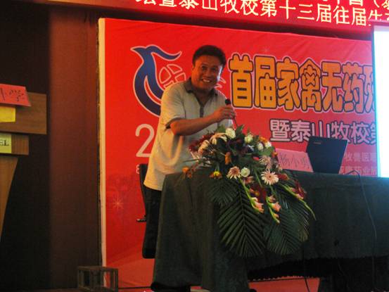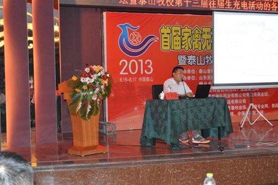 山東省畜牧獸醫(yī)局張洪本副局長就山東省家禽業(yè)發(fā)展現(xiàn)狀、面對的困難向與會人員做了通報,他鼓勵各單位應積極應對困難,做好本職工作,加大宣傳投入,對謠言、謬論及誹謗進行堅決駁斥。崔治中教授重點介紹種雞白血病凈化的必要性和關(guān)鍵技術(shù)。常維山教授就雞氣囊炎的發(fā)病機理和仿制要點進行了精彩講解。唐兆新教授介紹了疫苗的分類、保存方法,并分析了造成免疫失敗的主要原因。劉思當教授憑借豐富的臨床知識介紹了當前雞病的主要流行動態(tài),并就多個知識點表達了與其他老師不同的看法。趙繼勛教授重點就H7N9病毒的傳播、防治及未來走向表達了自己的觀點。劉治西教授就標準化肉雞養(yǎng)殖的關(guān)鍵技術(shù)與大家分享,并用大量數(shù)據(jù)公式證明了細節(jié)決定成敗的管理精髓。秦卓明研究員就水禽疾病流行動態(tài)及防控措施進行了精彩講解。楊小勇博士就中藥在養(yǎng)禽中的應用思路及進展進向大家進行通報,并當場給出4個中藥配方,贏得了陣陣喝彩。贊助企業(yè)也派出實力派講師,就如何解決基層問題以及無藥殘養(yǎng)殖的難點與大家認真交流。學校優(yōu)秀畢業(yè)生馬玉寶、孟濤就職業(yè)生涯中的經(jīng)歷、經(jīng)驗和心得毫無保留的匯報給了領(lǐng)導和參會代表,把會議氣氛推向高潮。